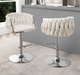 Elevate your space with these modern barstool featuring velvet upholstery and chrome bases. Adjustable height, built-in footrests, and swivel seats ensure optimal seating comfort, making them perfect for home bars or kitchen islands. Colors are available in Dark Gray, Black, Cream, and Emerald Green.