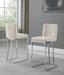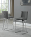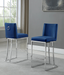 Elevate your home decor with these stylish and contemporary counter height chairs. Featuring plush velvet fabric upholstery and sleek, chrome legs, these chairs offer both comfort and elegance. The minimalist design includes a square seat and a decorative ring on the back, making them a perfect addition to any modern kitchen or bar area.