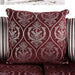 This lavish sofa and loveseat combo features rolled arms highlighted by faux wood carved detailing and classic bun feet in a walnut finish. The frame is wrapped in deep burgundy chenille--a bold choice for a design that's already dramatic. Mesmerizing silver embroidery and patterns are found on accent pillows and one side of the comfortable, reversible cushions. Every single detail comes together for a truly opulent, traditional design.