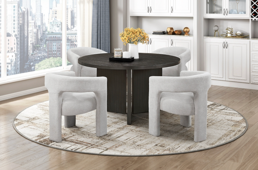Alexa 5 Pc. Round Dining Set Table Size: 54 Dia x 31 Height Side Chair: 24 x 23 x 30 Height Chairs available in Light Gray, and Orange.
