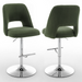 Elevate your space with these modern barstools featuring boucle fabric upholstery and chrome bases. Adjustable height, built-in footrests, and swivel seats ensure optimal seating comfort, making them perfect for home bars or kitchen islands. Colors are available in Dark Gray, Green, Black, and Beige.